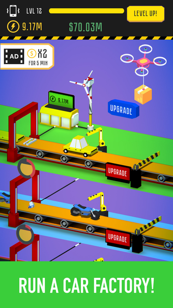 Car Factory is een vermakelijke tycoon game voor iPhone waarin spelers hun eigen autofabriek kunnen runnen. Het doel is om supercars te ontgrendelen en te verkopen, terwijl je tegelijkertijd je productieprocessen optimaliseert. De game biedt verschillende functies zoals het genereren van groene energie met een windmolen en het upgraden van productielijnen om de winst te maximaliseren.